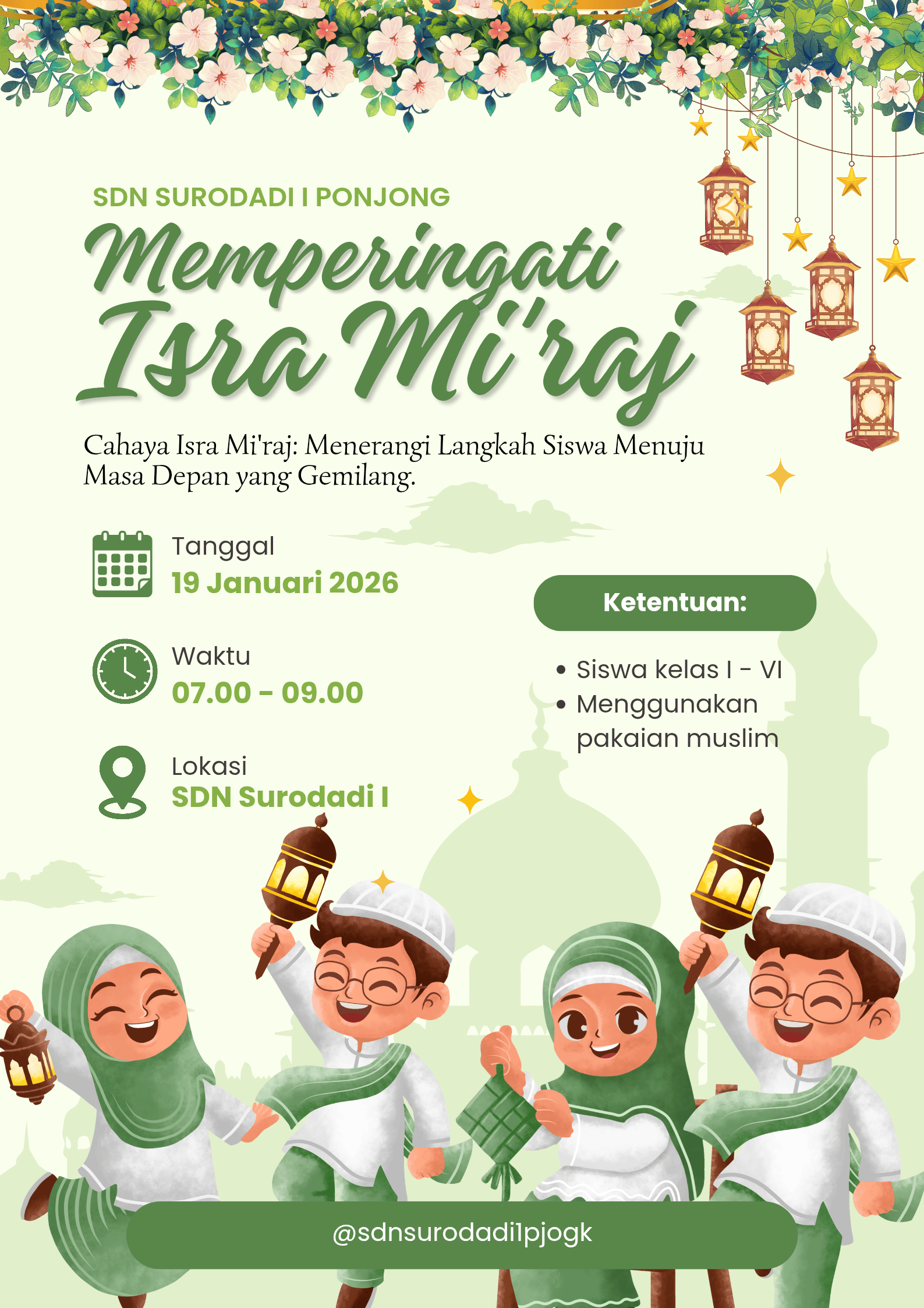 Ponjong - SDN Surodadi I Ponjong memperingati salah satu hari besar agama Islam, yaitu Isra Mi'raj di tahun 1447