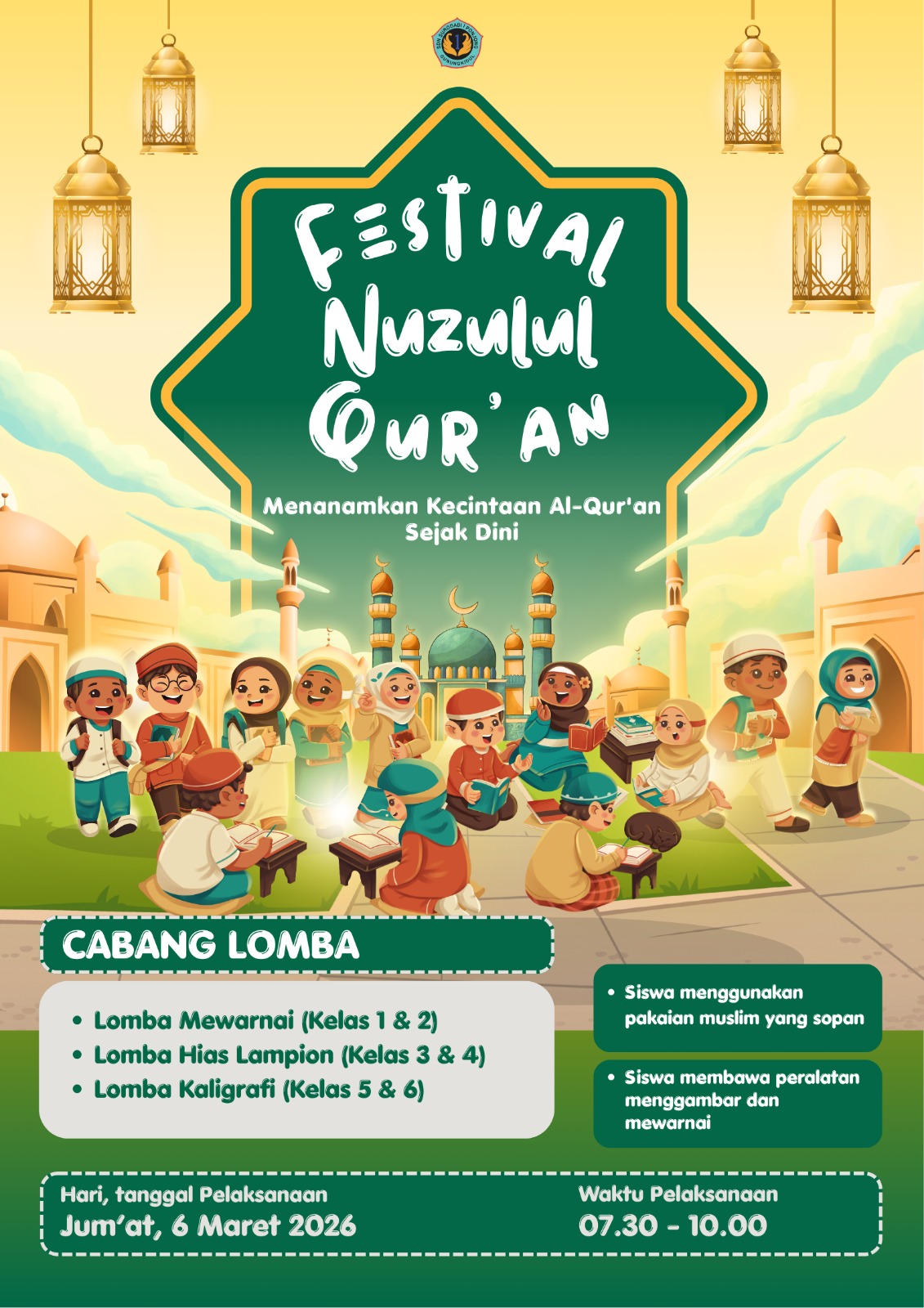Ponjong - SDN Surodadi I Ponjong memperingati Nuzulul Qur’an dengan mengadakan Nuzulul Qur’an Fest pada hari Jum dengan lomba-lomba untuk menyemarakan peringatan Nuzulul Qur’an. Adapun lomba lomba yang dilaksanakan yaitu lomba mewarnai untuk kelas I menghias lampion untuk kelas III dan kelas IV, serta lomba kaligrafi untuk kelas V dan kelas VI. Peserta didik mengikuti suportif yang kemudian terpilihlah para juara dari tiap cabang lomba. Dengan adanya kegiatan ini bertujuan agar peserta didik lebih mengenal Al-Qur’an, dimana ayat pertama diturunkan di bulan Ramadhan yang kemudian peristiwa turunnya wahyu Allah ini disebut dengan Nuzulul