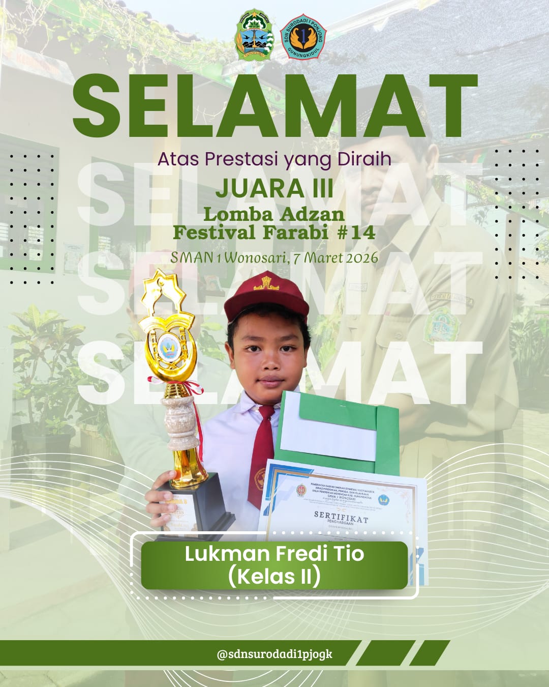 Ponjong - Sabtu, 7 Maret 2026, kontingen SDN Surodadi I Ponjong mengikuti lomba Farabi Festival #14 yang diselenggarakan oleh ROHIS Farabi